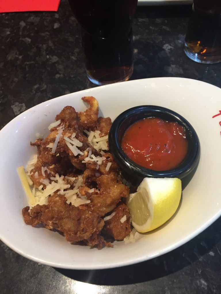 Calamari – this came topped with grated cheese which I thought was strange. Not sure if this is the cone thing? I read the menu and in my head I thought they would be a bit spicy from the batter, but they weren’t. My mistake this wasn’t mentioned in the menu. I thought they were okay. You got a good amount. I wouldn’t order again. I think they were too bland. I would rate this dish 3/5.