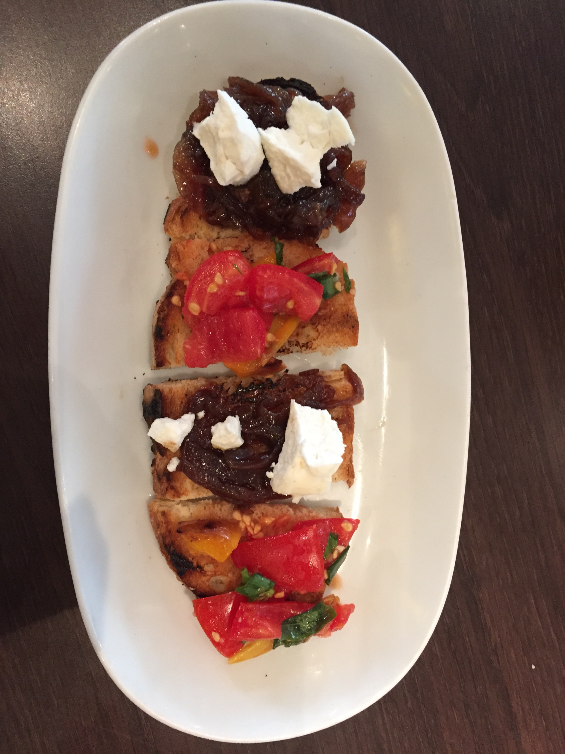 Mum had the bruschettine to start, this was £3.95 and new to their menu. It was four bits of bread, two topped with tomatoes and the other two bits topped with onion jam and goats cheese. Looked really good. This dish was part of their 3 dishes for £10 or one for £3.95. I love deals like this so if you fancied a snack after shopping you can head her and get a little mixture.
