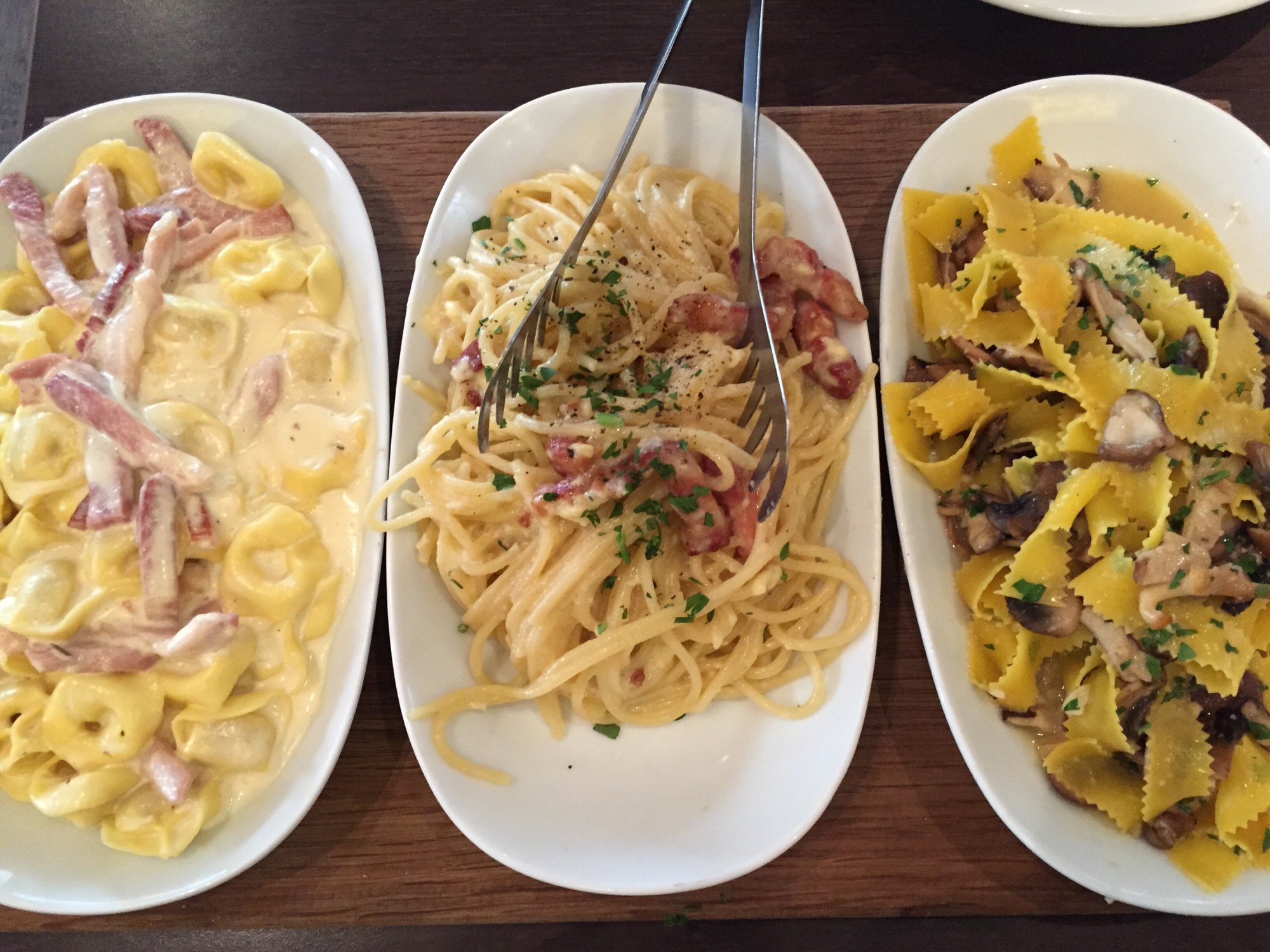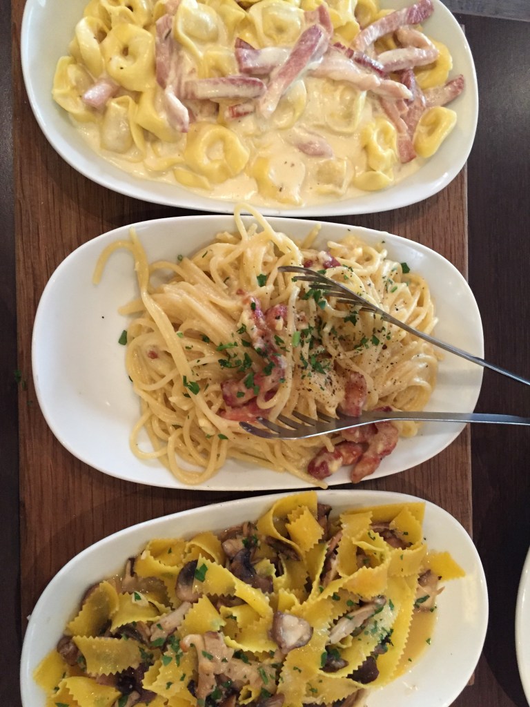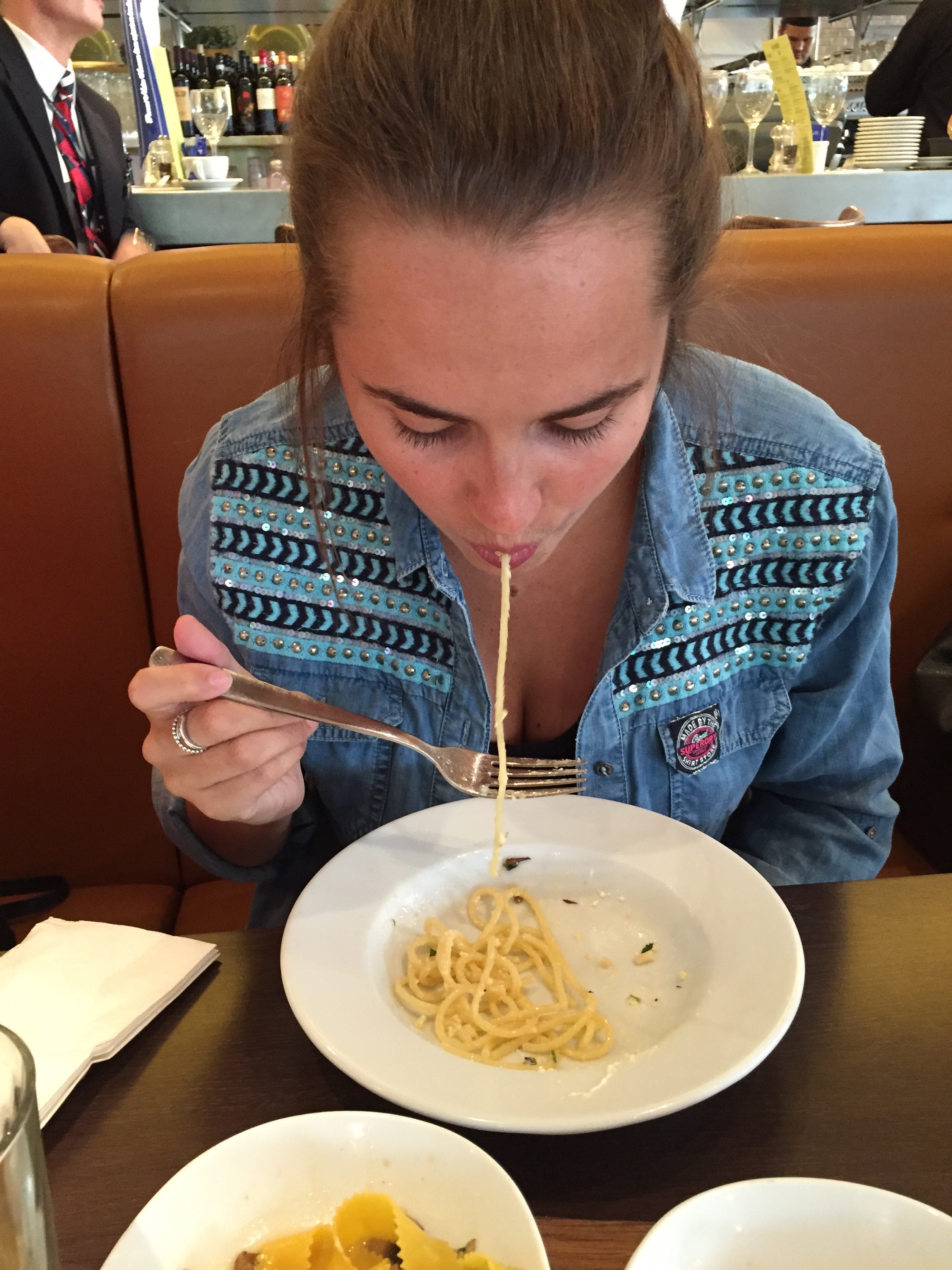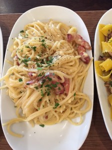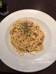 Amanda enjoyed her carbonara but you get a big portion of pasta, she couldn’t finish it!