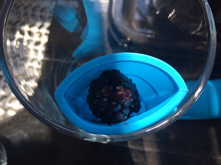I gave the moulds a quick wash in warm water then left to dry. Cut up a few raspberries and blackberries ready to put in with the juice. If you stand the moulds in glasses it makes it easier to pour the juice straight in.