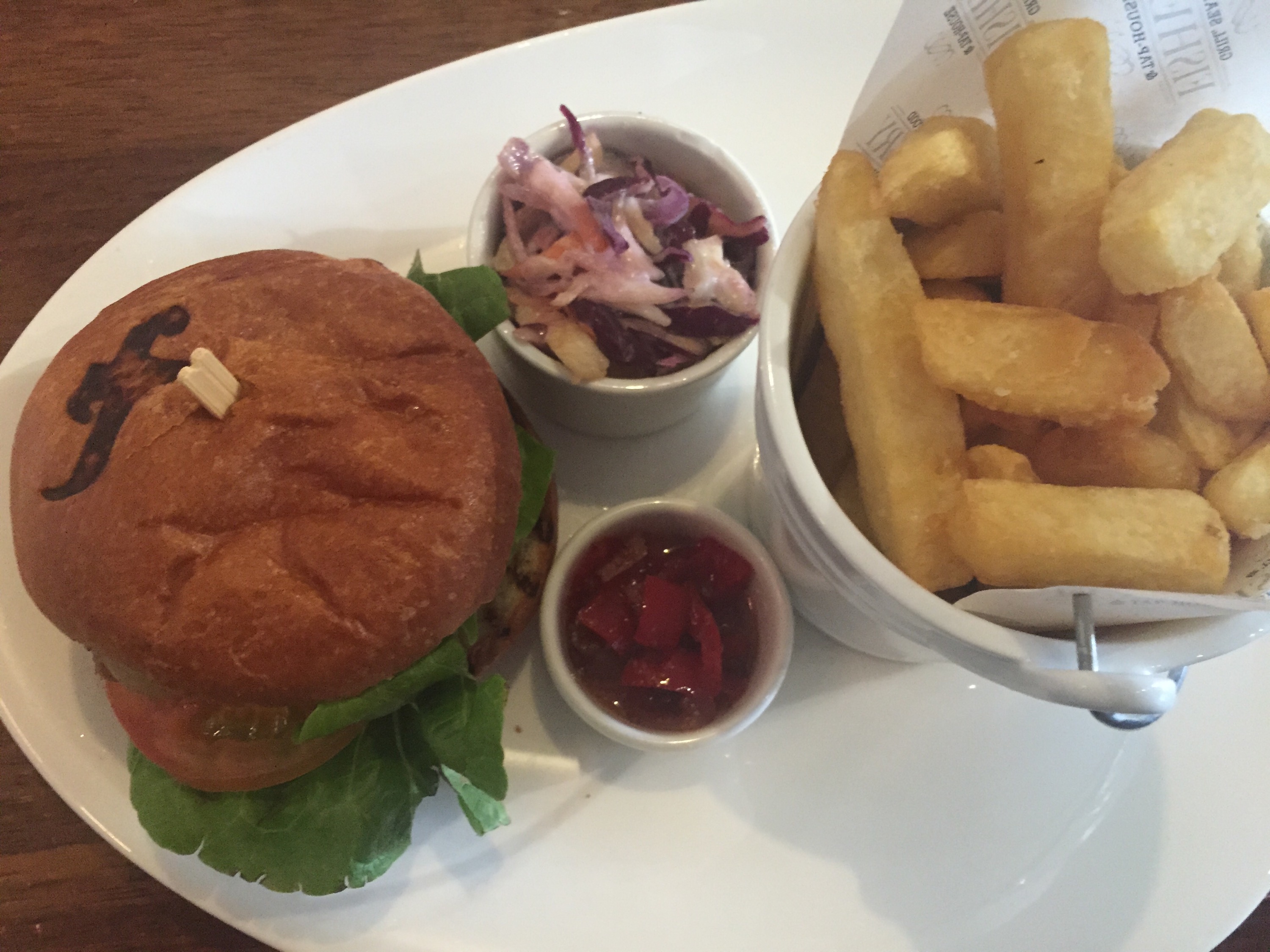 For my main I was stuck between the steak and burger. I hadn’t had a lunch break so I thought the burger would be a good treat! It was £10.95. It comes with chips, coleslaw, a salsa dip and salad in the burger. The bun is a brioche bread so it was very sweet. It was too sweet for me, but obviously I still ate it all! The burger itself was really good. The presentation was really good, the burger bun gets stamped with an F which i thought was cool. The chips come in a small bucket type pot which I just pour straight onto my plate. The coleslaw was really good, it was obviously all made there fresh as the cabbage still had crunch to it. We asked for some mayonnaise which came out in cute little glass jars.