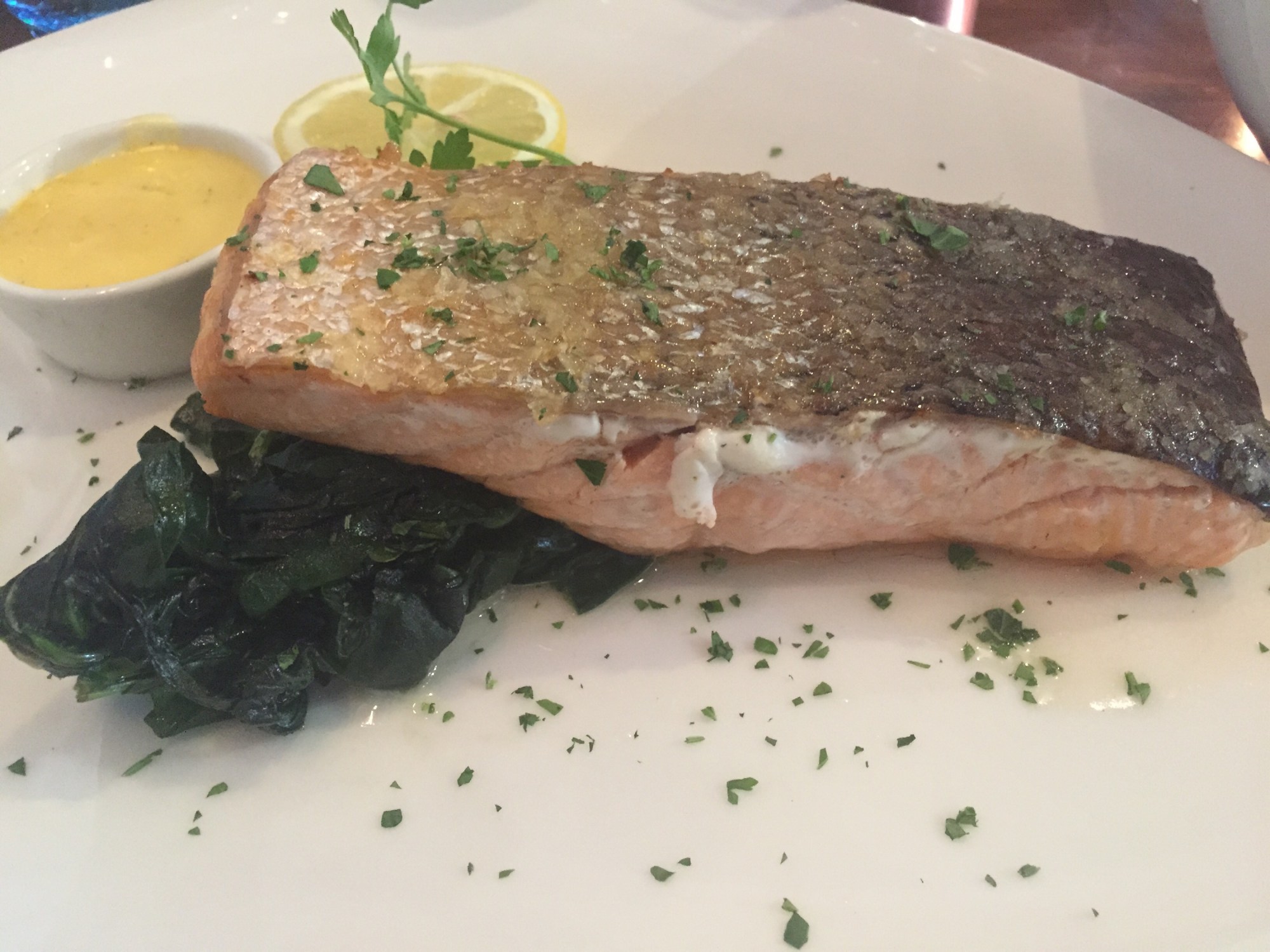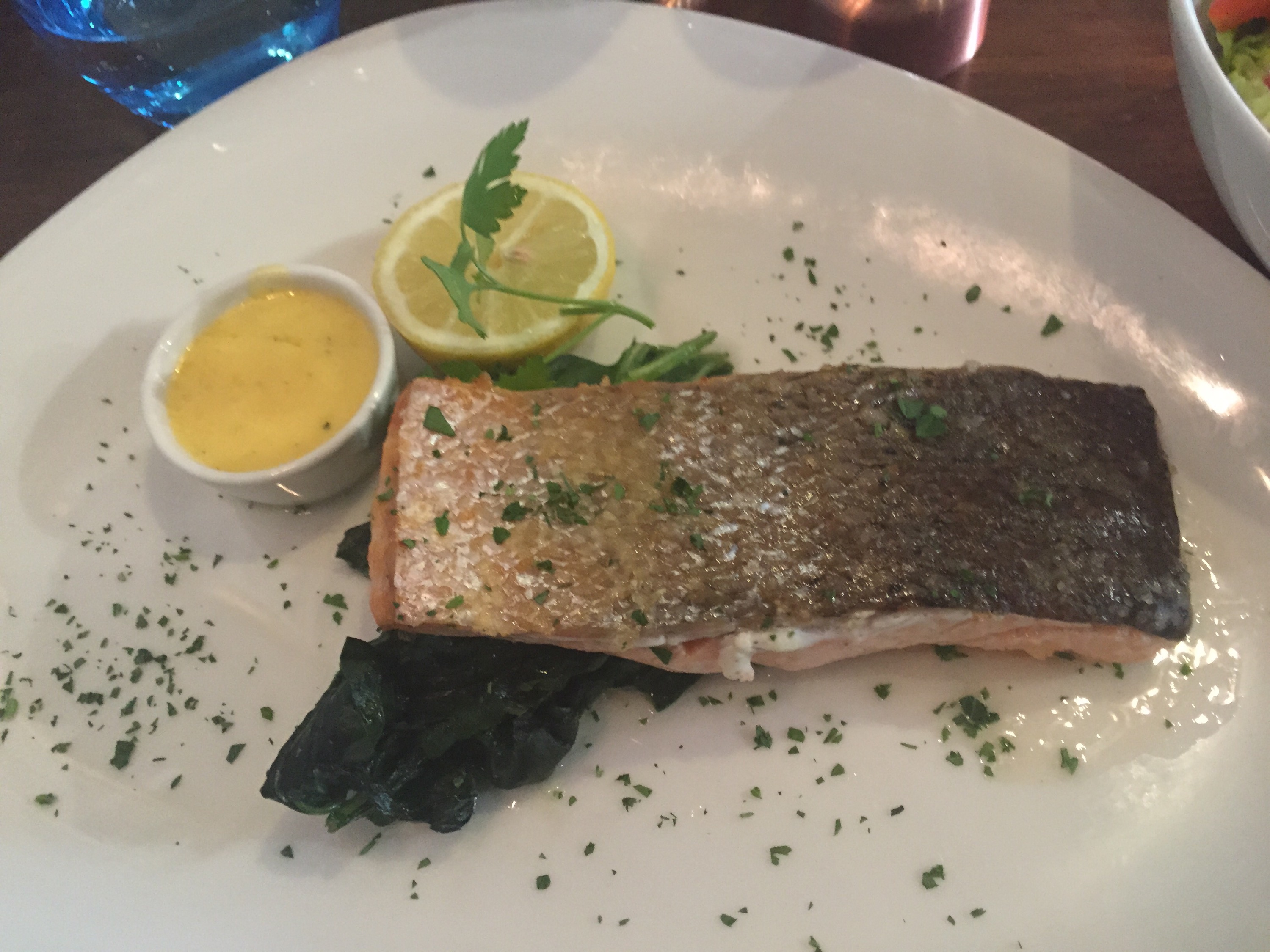 Mum wanted to have something different so went for something on the specials board. There is an actual speacials board when you walk in next to a fire place. The waitress tells you all the specials when she comes to the table too. She went for the salmon filet which was £18.30. This came with a hollandaise sauce and spinach. He waitress recommended that mum ordered some potatoes or another side with it, so she ordered a side salad. Once again the presentation was really good for this dish. Mum ate all of this and said it was really good.