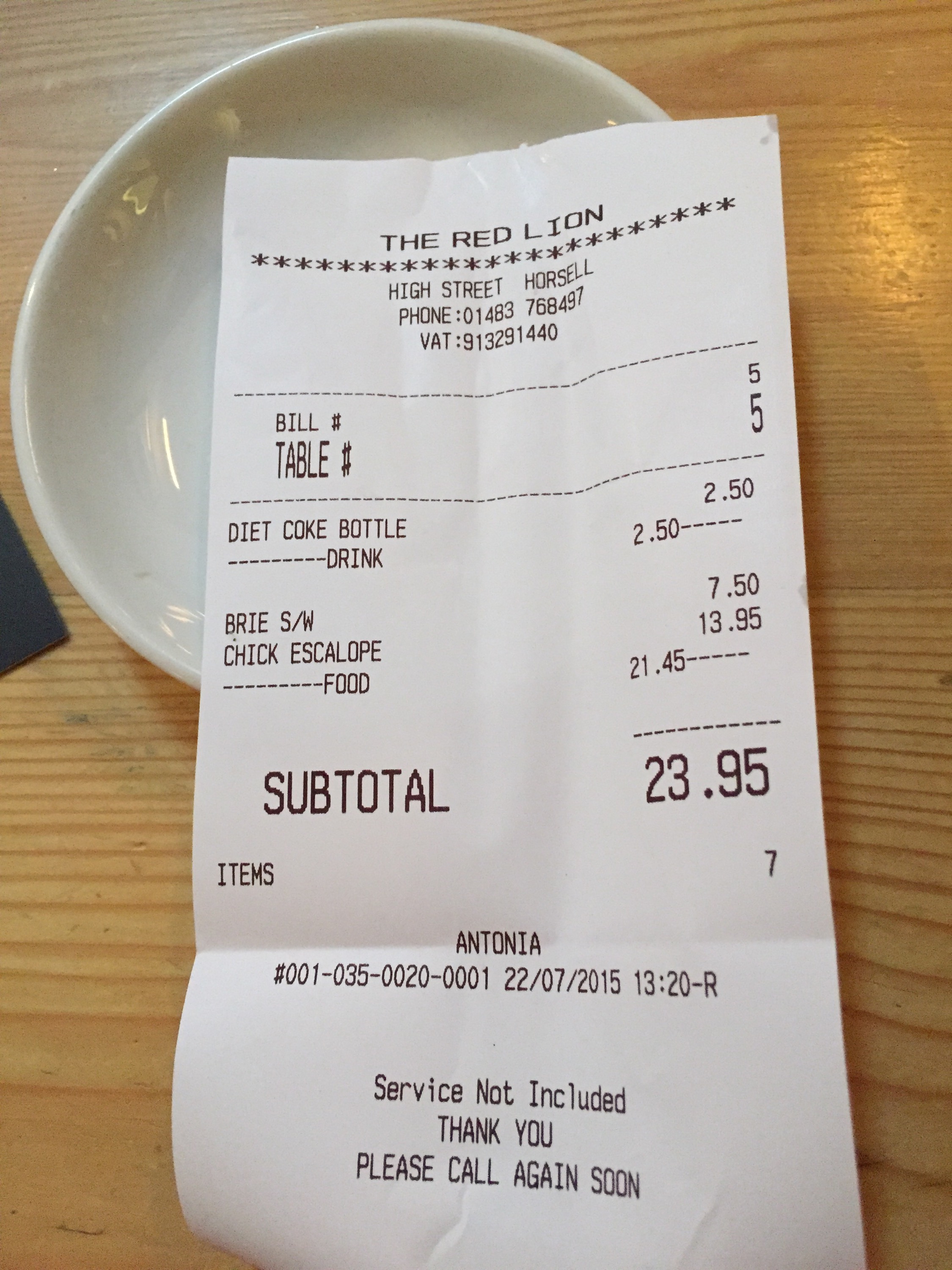 The meal come to a total of £23.95, which I think is a good price for a lunch time treat.
