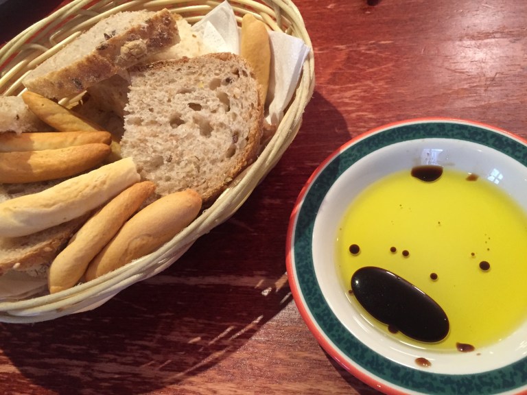 Mum ordered the meat and cheese platter for one, this came out first. This is called Plato de Embutidos and was £7.50 for one person, or £12.00 for two people. You get a selection of Serrano ham,chorizo and salchichon, cheese and olives. We also asked for some breads too. This was £3.25 and comes in a basket, whit olive oil and balsamic vinegar. You get a mixture of breads, some which were like bread sticks which were really crunchy!