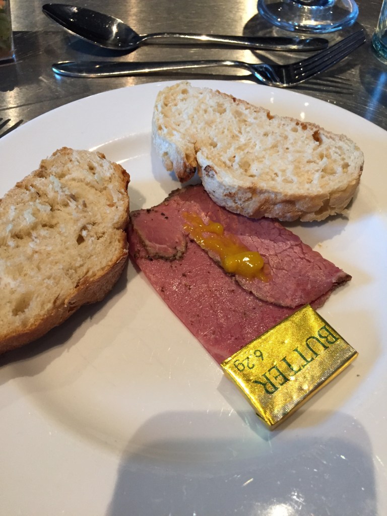 Next course was soup and bread. We all went a bit over board here. The soup was leek and potatoe. This needs to be ordered from the kitchen. The soup was really nice. I added black pepper to mine and it was really good. Our problem was the bread. Without realising we ate quite a lot, which filled us up. Matt must have had at least 6 bits of bread here.