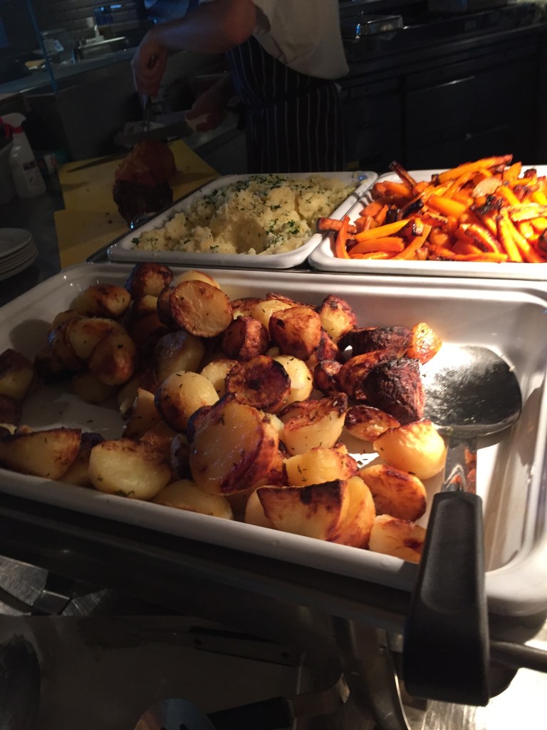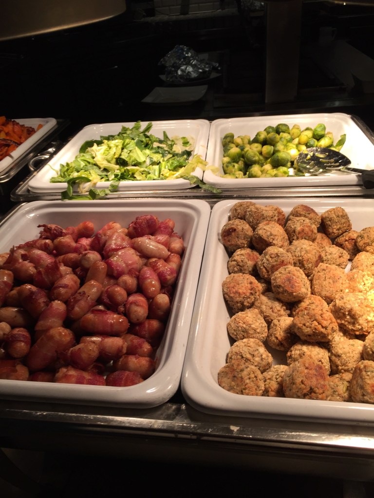 The waiter explained how the carvery worked. You can help you self to cold meats and salad to start. They had quite a big selection. They had small dishes with ready made salad in, I picked up a prawn cocktail pot. This was really nice. They are very good at keeping the food toped up, they were constantly bringing out new pots to fill up the displays.