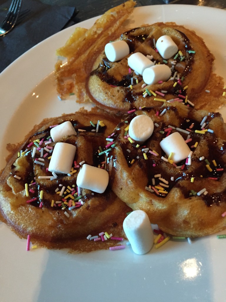 Last course was the waffles and ice cream station. Matt went up and made him self some waffles, with sprinkles, marshmallows and chocolate sauce, and some ice cream. I couldn’t even move from the chair I was so full up. I think the others also had some ice cream too.
