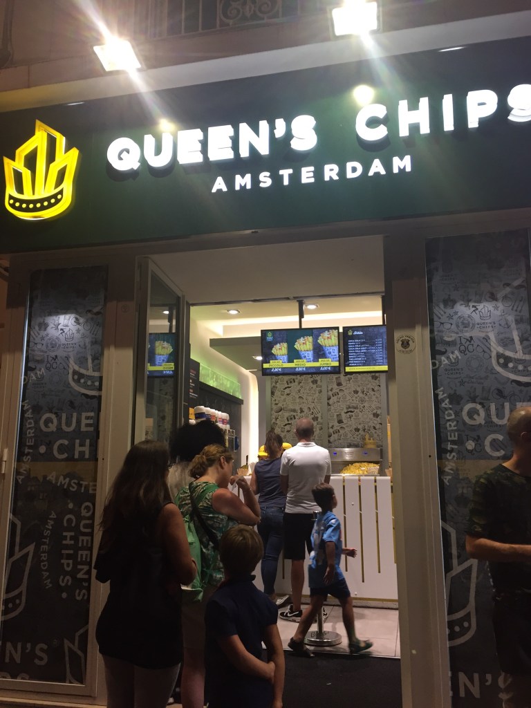 This was really nice, it looked like a garden. We had cocktails and chatted to everyone. We were still tired so had to head off early. We were peckish so we spied a chip shop earlier so headed there. It’s called queens chip shop.