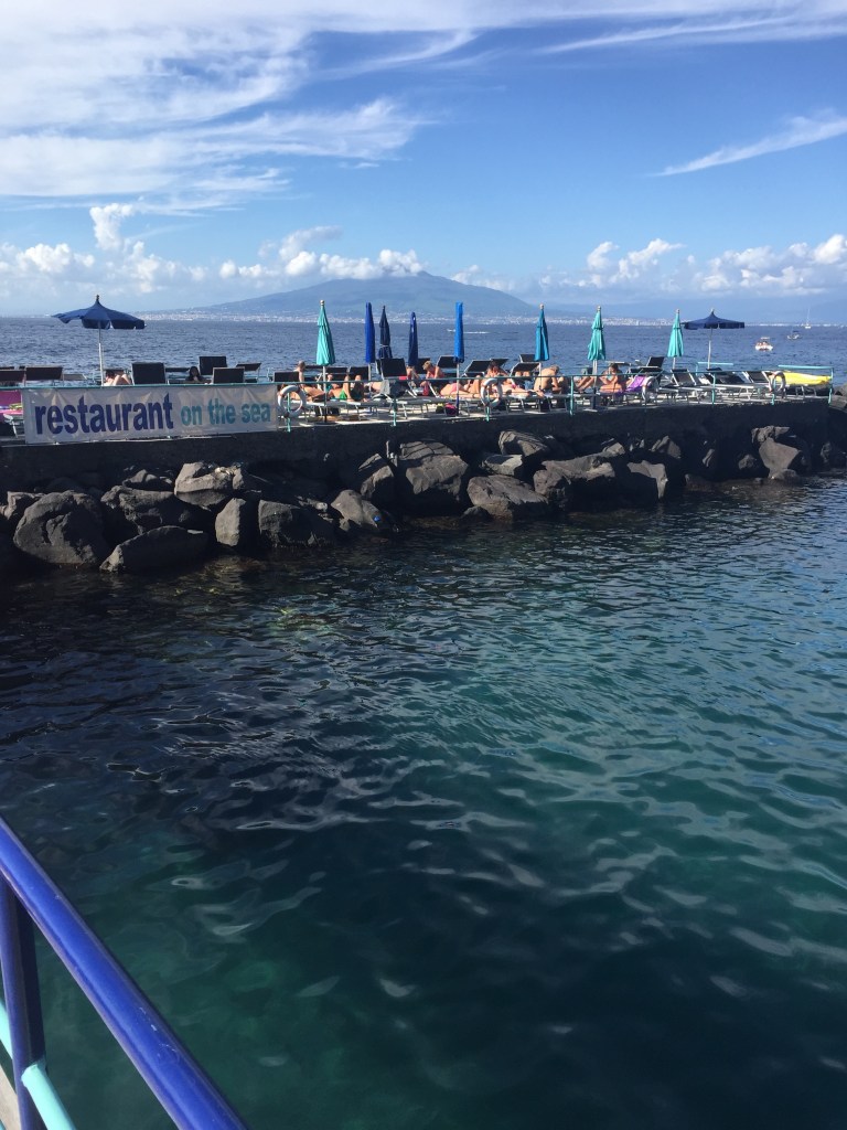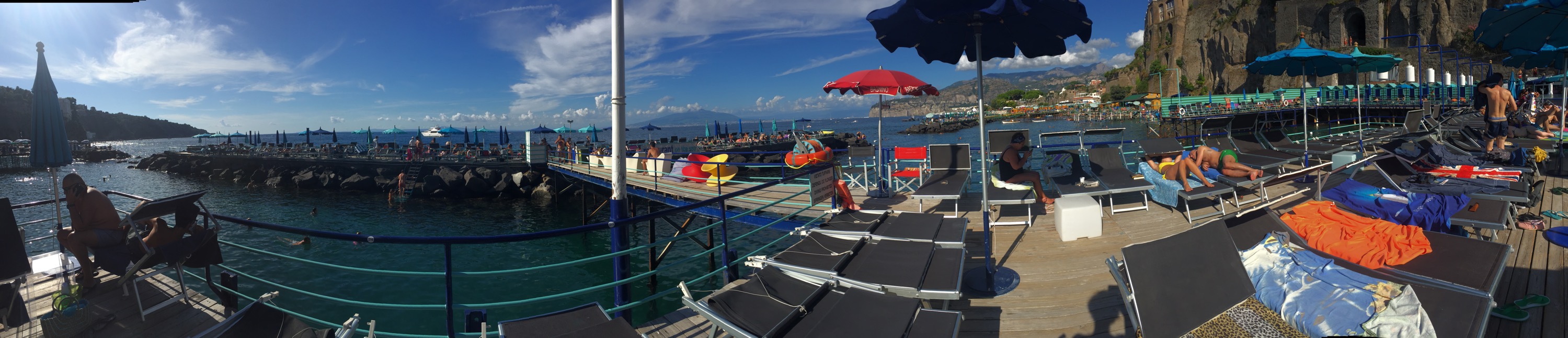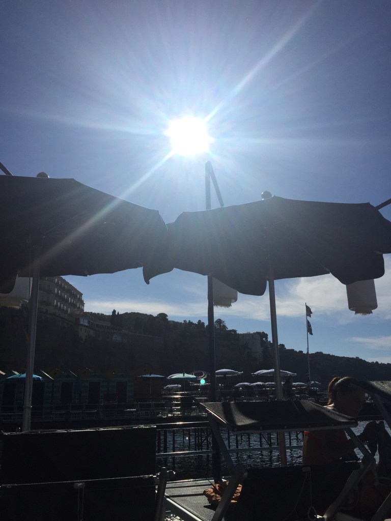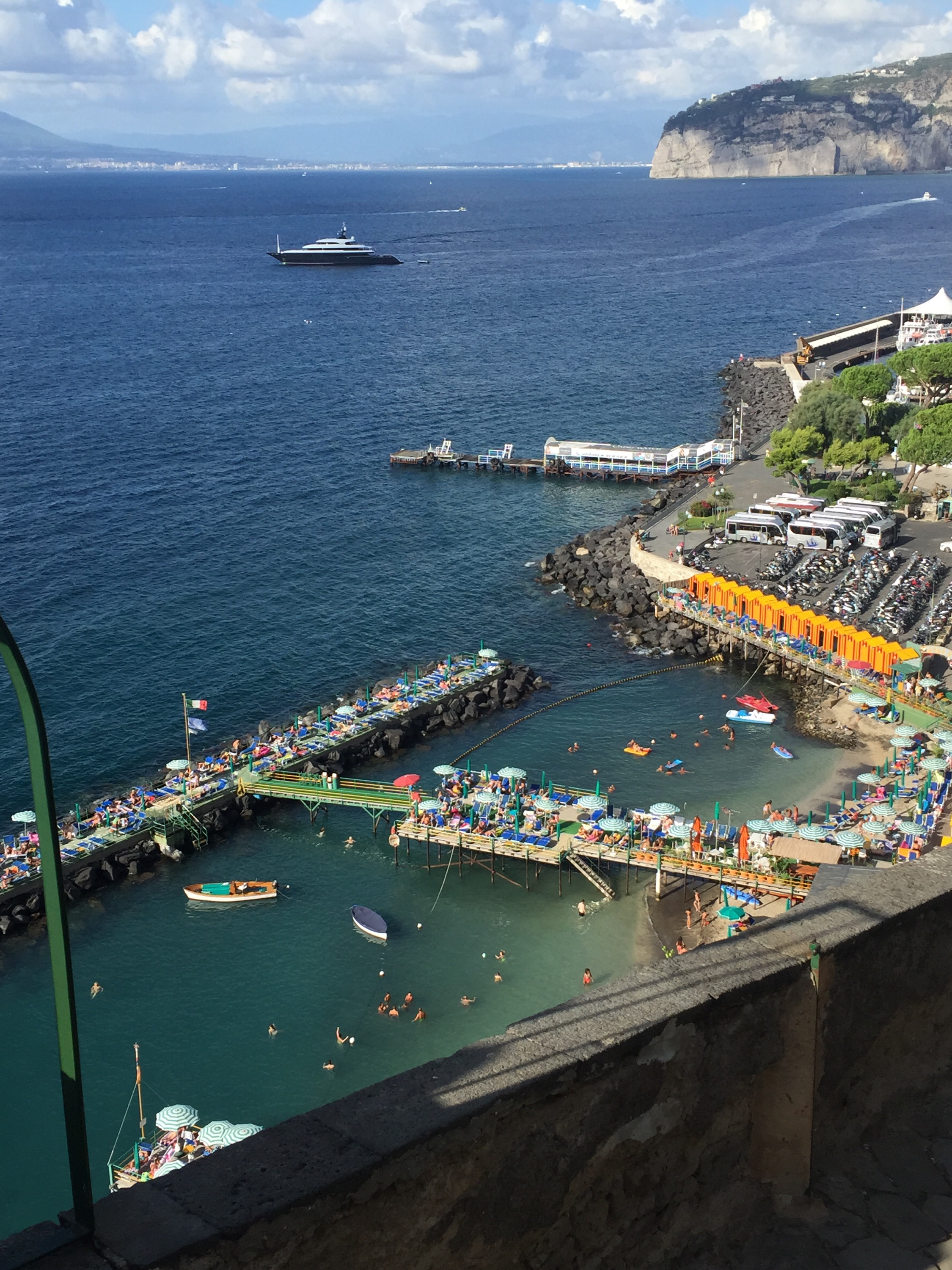 Our last day in Sorrento. The sun was shining so we headed down to the beach decking area. You pay something like €1.50 which gives you access to a lift to go down, and then to come back up.