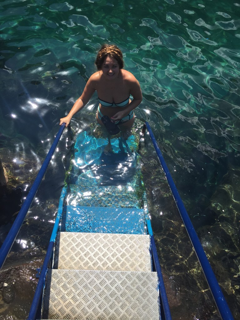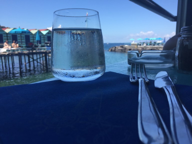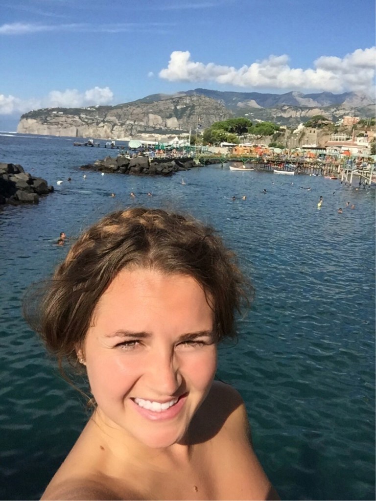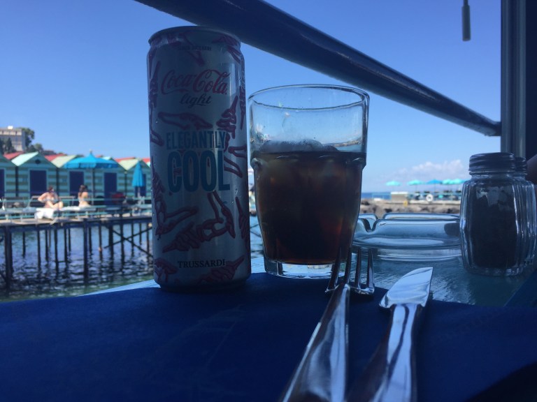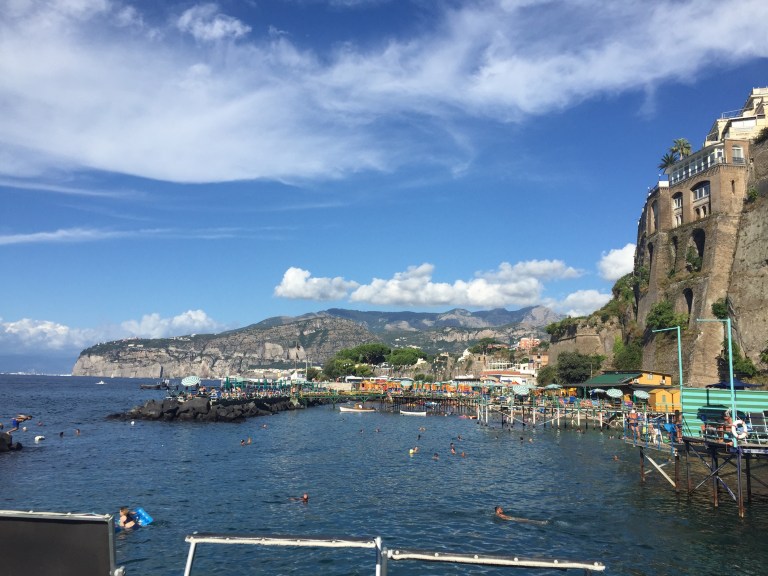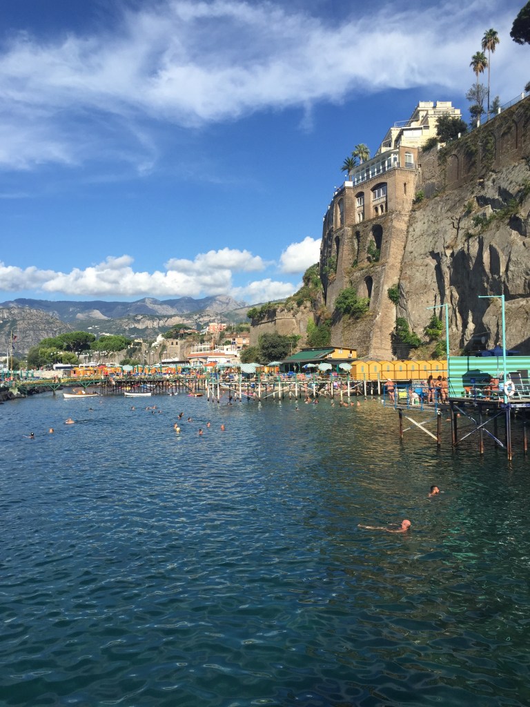 Our last day in Sorrento. The sun was shining so we headed down to the beach decking area. You pay something like €1.50 which gives you access to a lift to go down, and then to come back up.