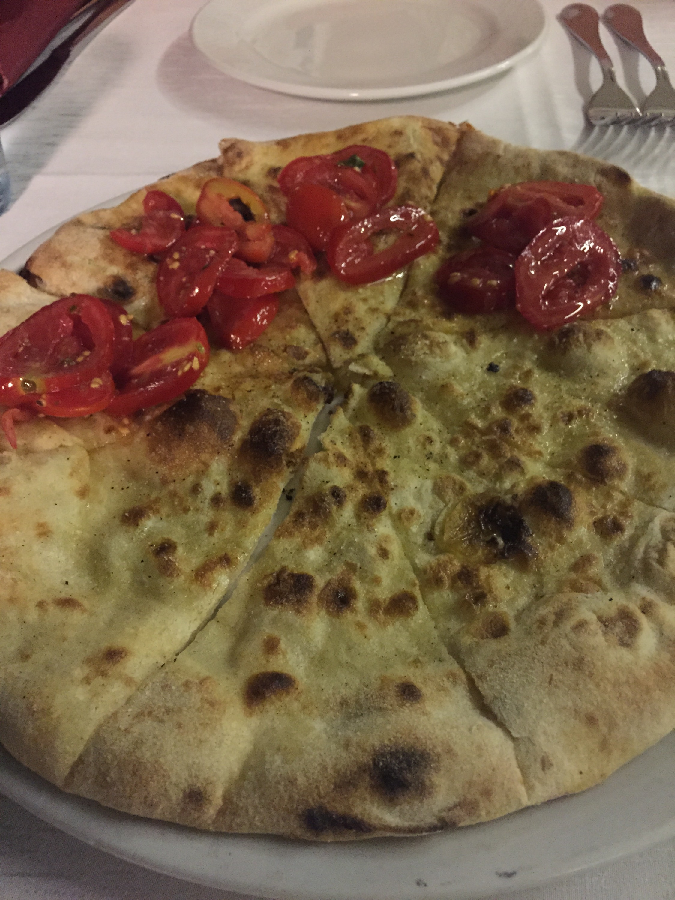 We knew the food was amazing from last night so I was really excited. Once again we got given some bread and we got a focaccia bread with tomatoes on. This was amazing, it reminded me a breakfast baguette we had in Almeria.