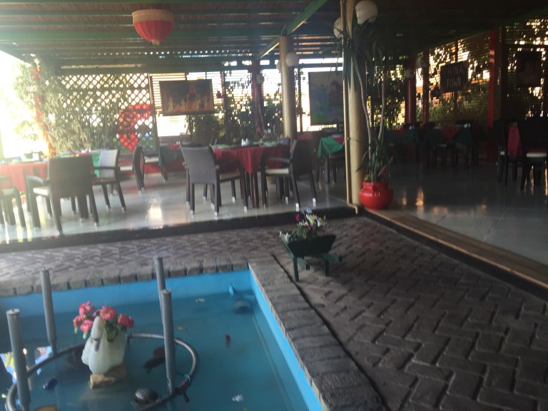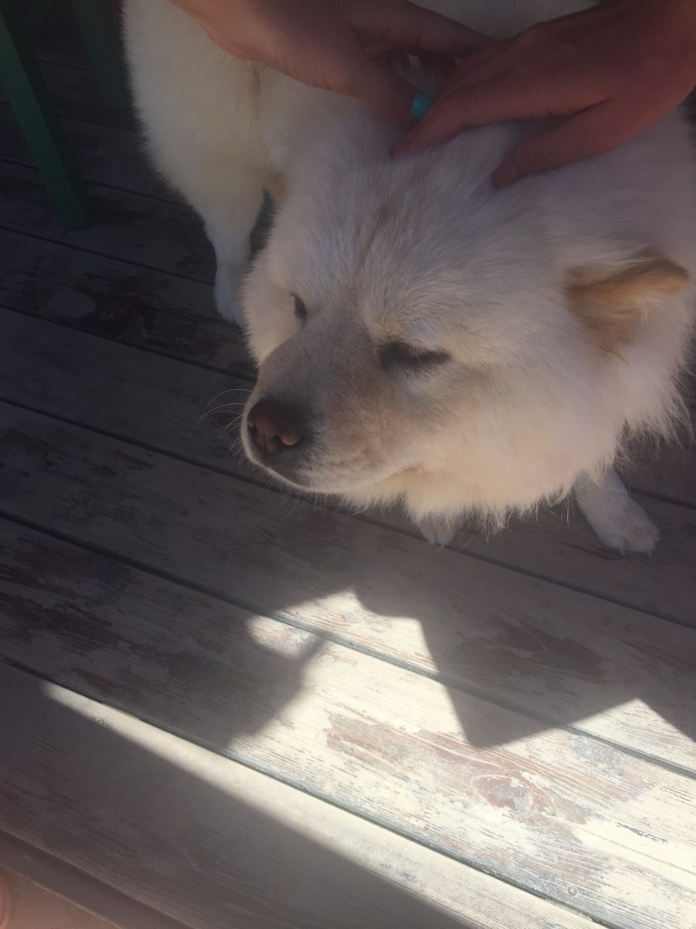 They had the cutest white little dog too. He is tied to a post but he can wonder round quite far. He was so cute! I had to have cuddles before we went back to the sun beds.
