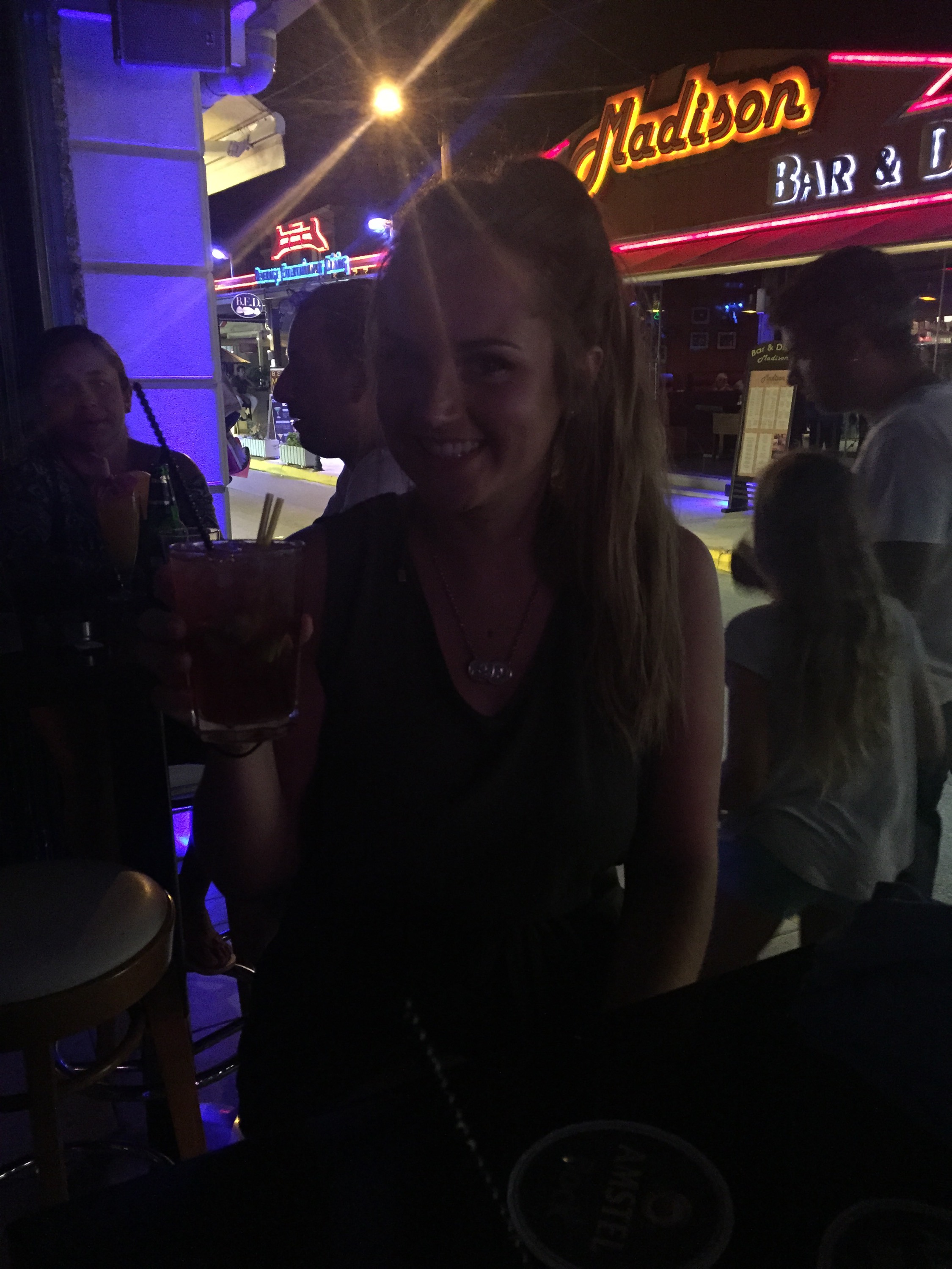 We headed back to the house to get ready. We didn’t plan to have a late one. We went to Lauren’s bar for a cocktail. Cherry mojito again!