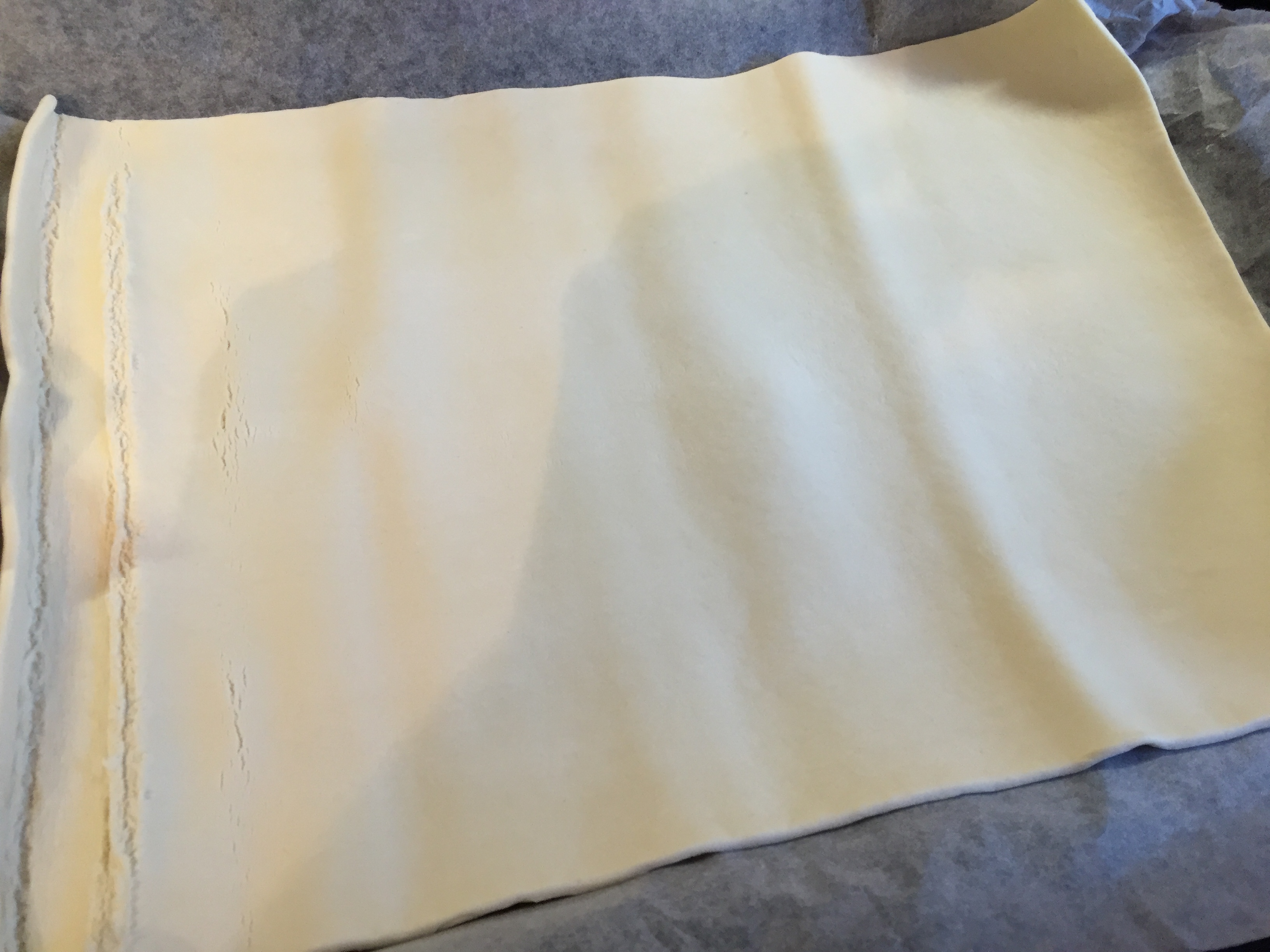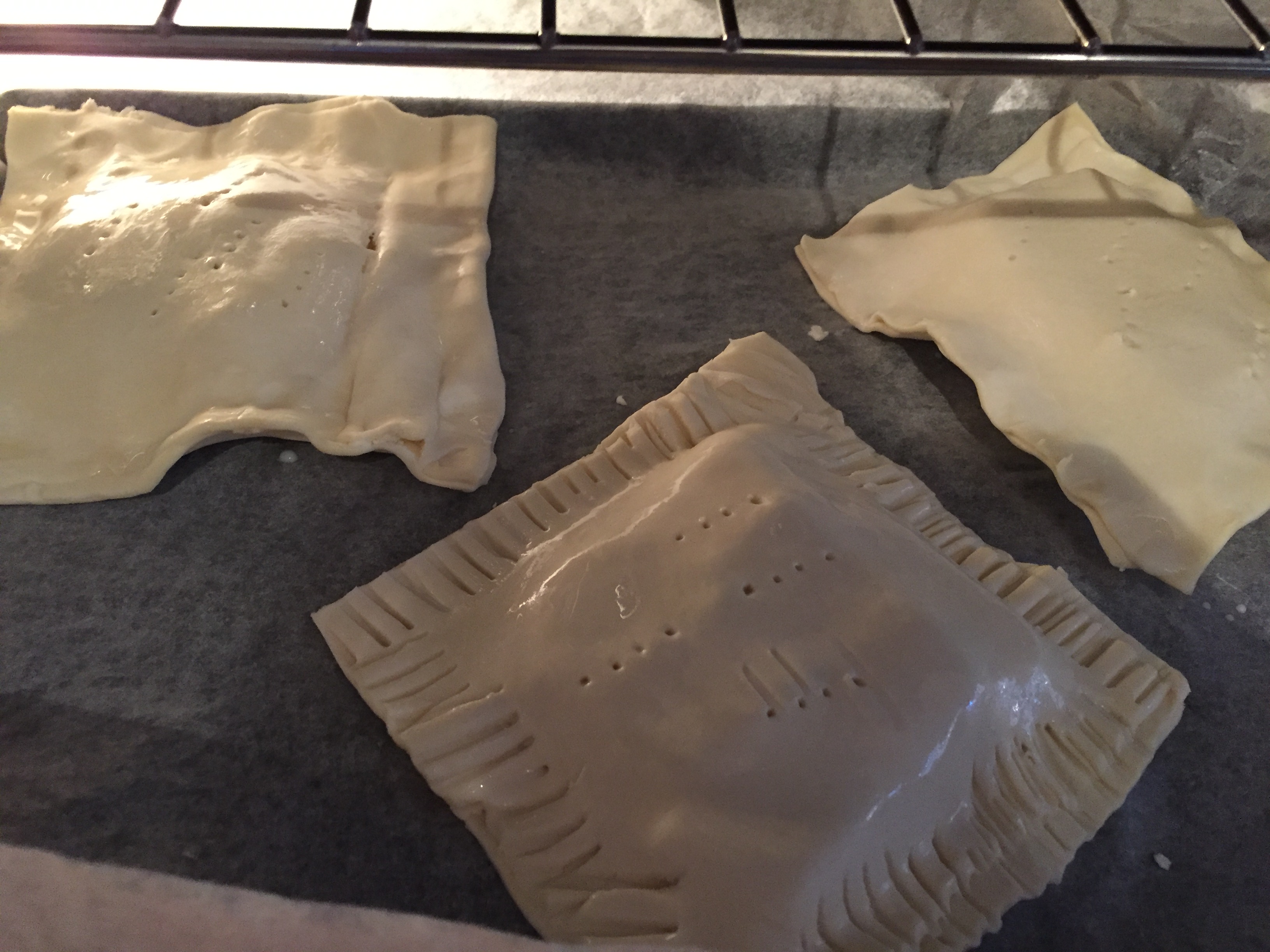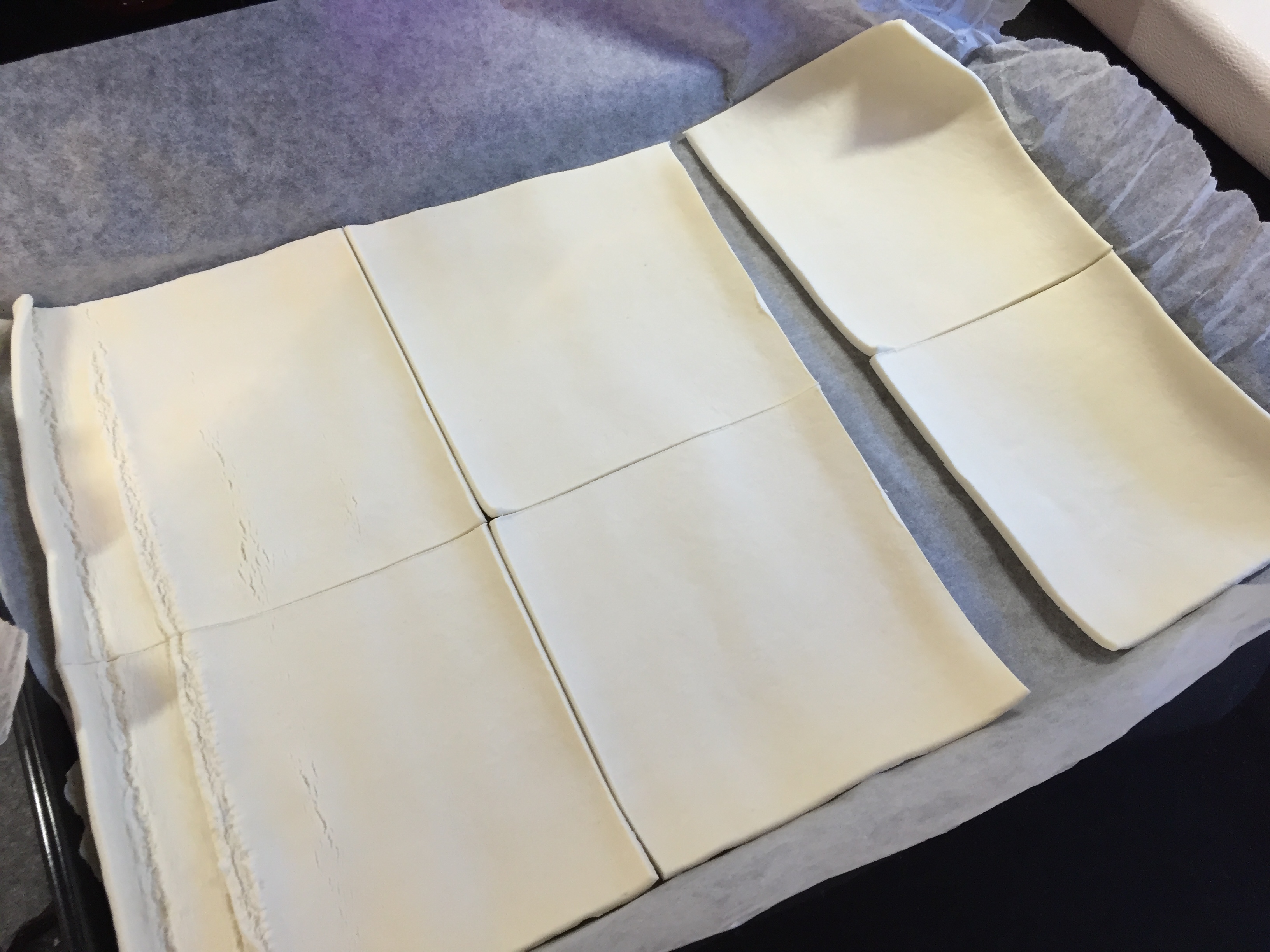 I started off and cut the pastry into 6 pieces. This would then make 3 parcels.