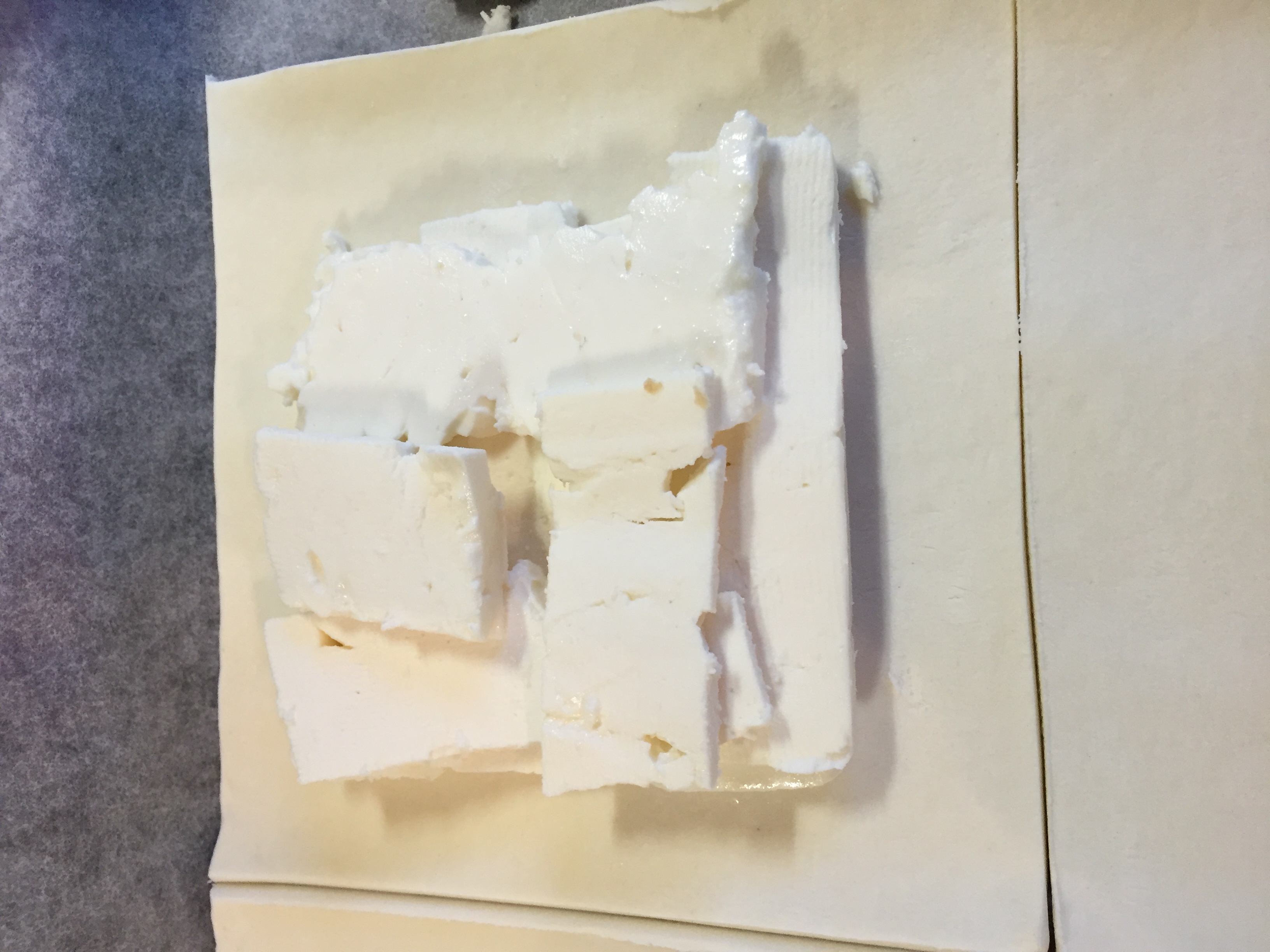 I then cut up the feta and broke it all up and crumbled it onto 3 bits of pastry.