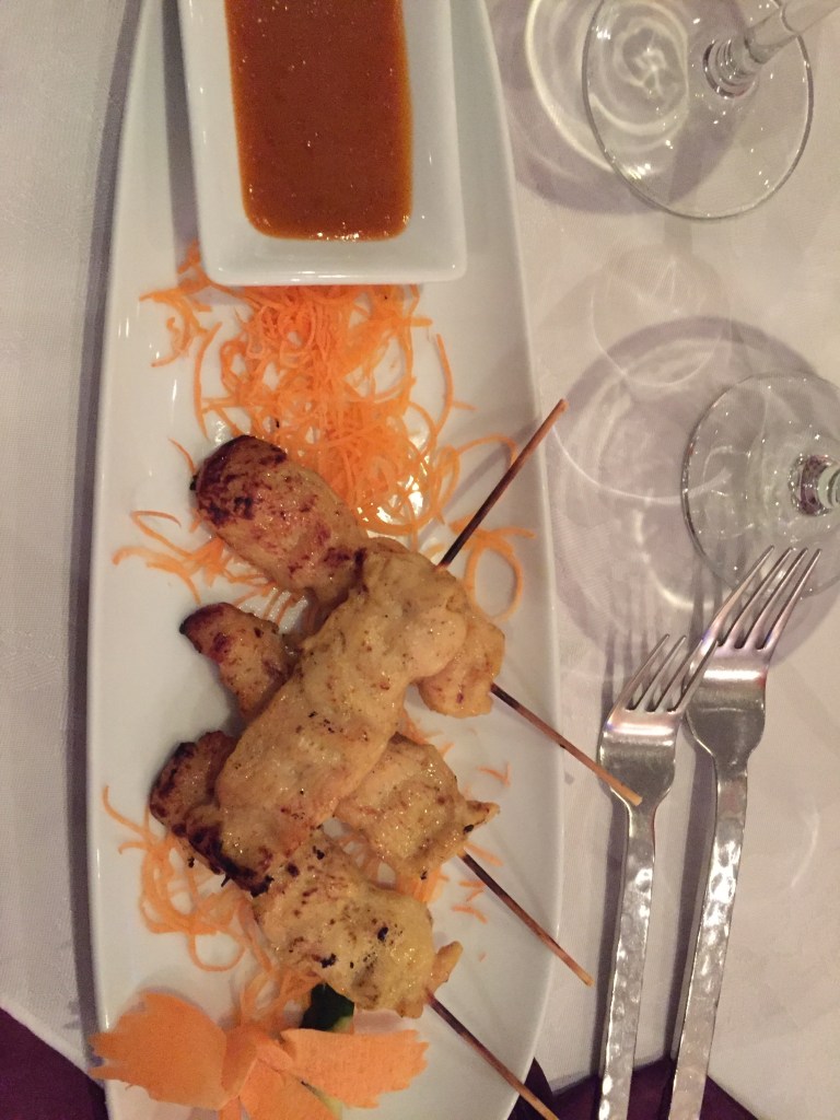We all decided to go for a starter, I was torn between the calamari, prawns or chicken skewers. Steph was going for the skewers, so I was forced into having them, I would have been so cross, if I went for the prawns and hers came out and looked amazing. Yes I have a serious condition of food jealously. The dish is called Satay Gai and costs £7.60. You get 4 skewers of grilled chicken and a pot of peanut sauce. These were really good I would give this 10/10. There is nothing I would want to change with the dish.