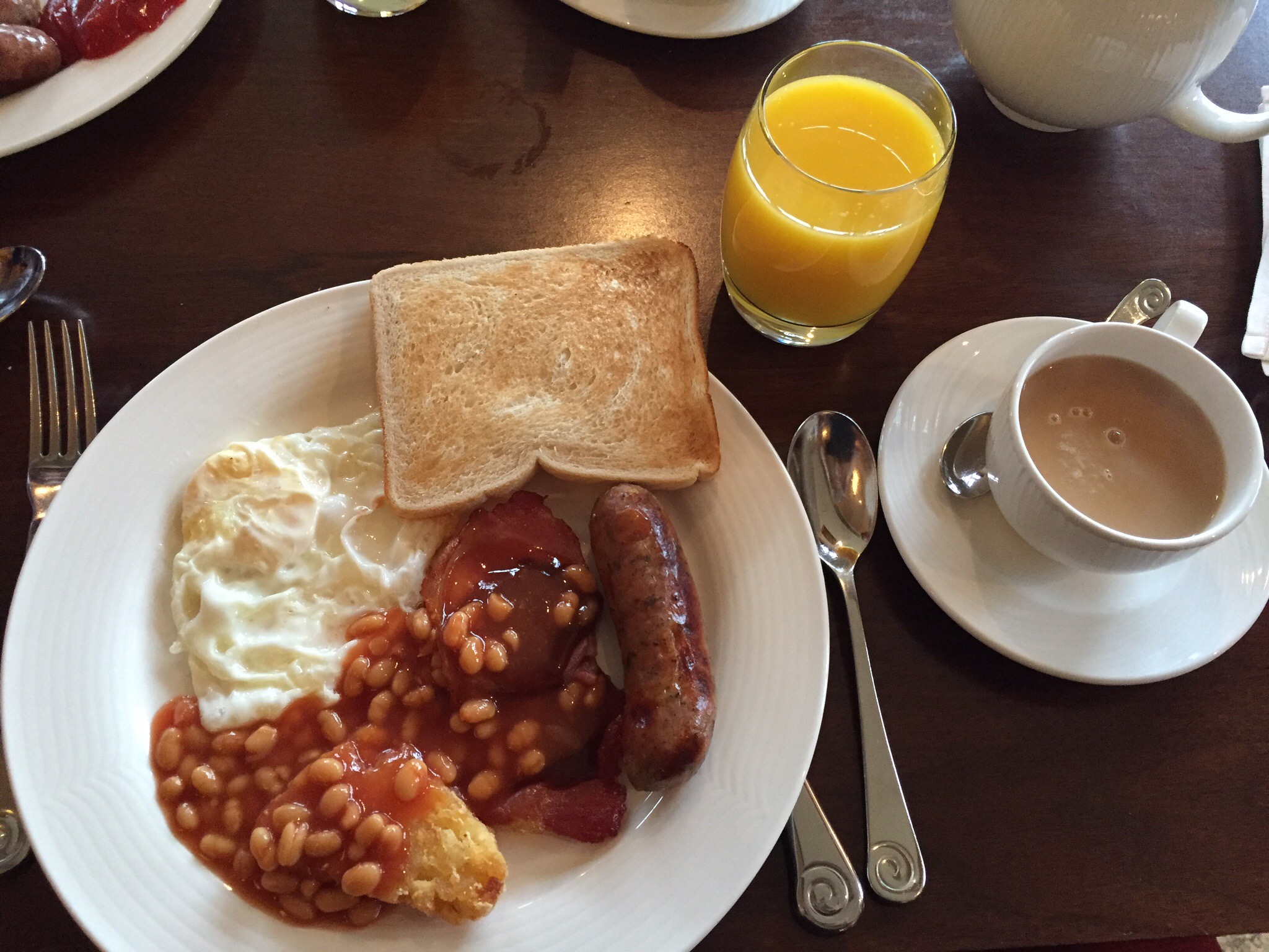 I went for fried egg, hash brown, sausage, bacon, beans and a piece of toast. You can toast your own bread so you can have it cooked just how you want. I also got a cup of tea and glass of orange juice.