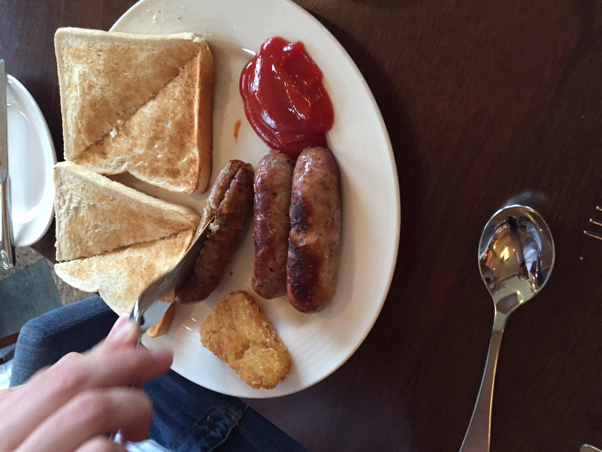 Matt went for his usual breakfast, some toast and sausages. He doesn’t really like cooked breakfasts so that’s his own version, with a side of ketchup.