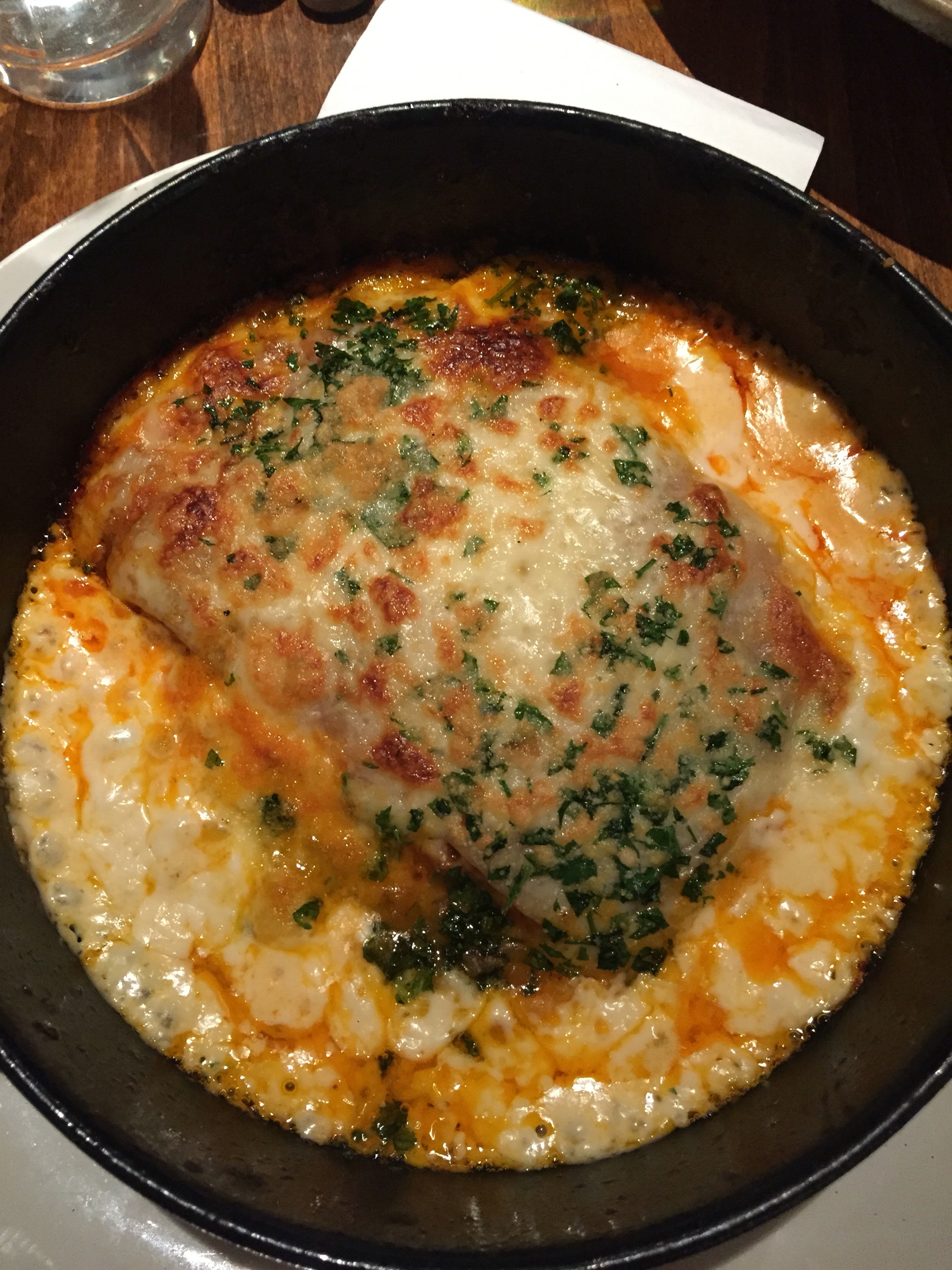 To start, me, Kirch and Becca shared cheesy garlic bread. This comes with caramelised balsamic onions on top. I wasn’t sure of the onions but everyone was raving about this starter. It was nice. The onions did add an extra something to it. We got 6 sections, so it’s great as a sharing starter. However some of the bread doesn’t get topped with cheese, so you just get a toasted bit of bread. So if your sharing someone will be left with these bits. I would give this dish 7/10.