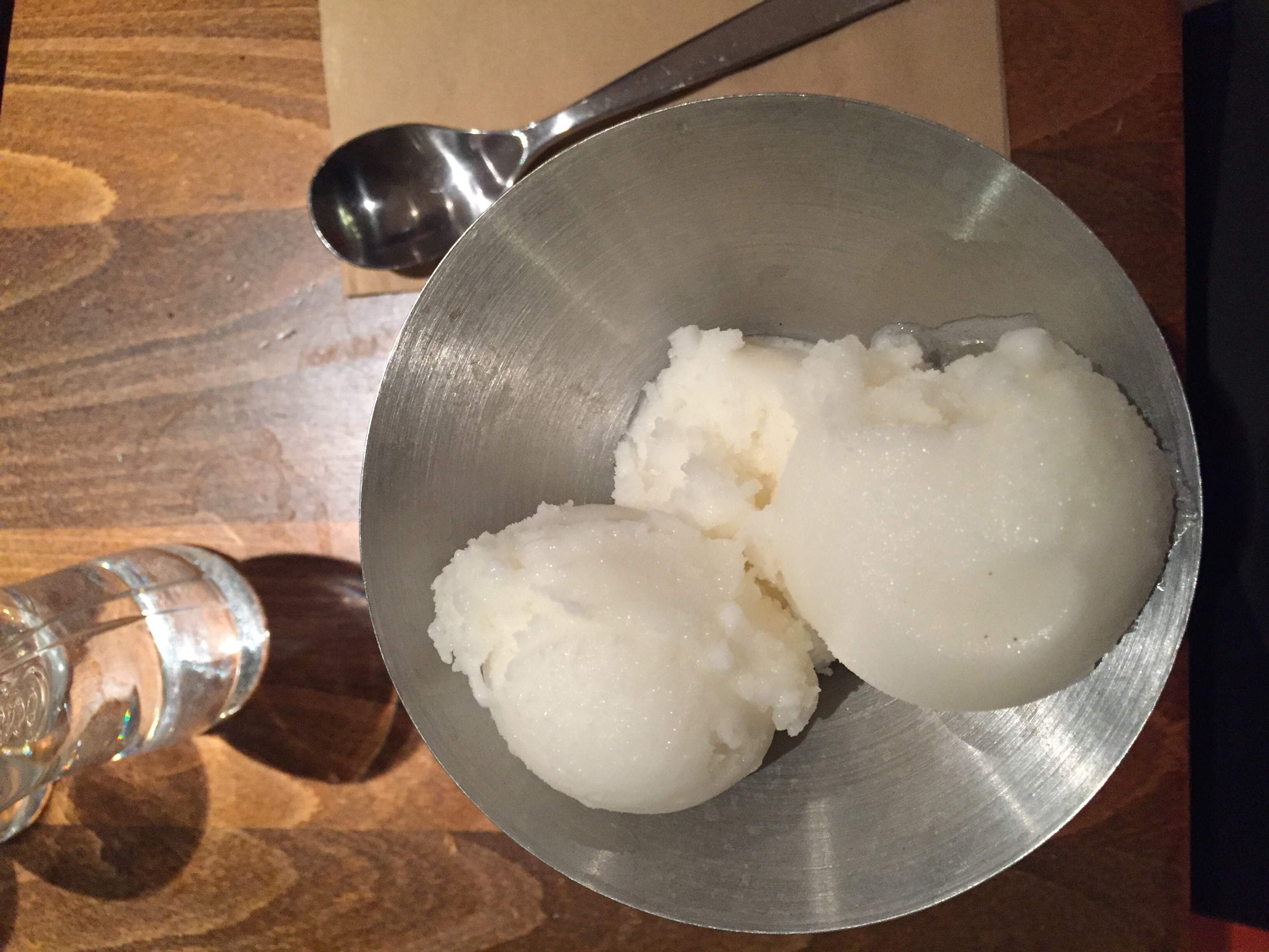 I went for some lemon sorbet. I love sorbet. I think it’s so refreshing after a meal. You get three big scoops. In this sorbet they have the bits of lemon in it, which I like but I know some people don’t. I would give this 9/10.